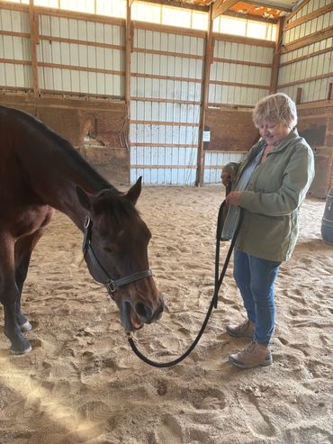 Masterson Method session which involves me working interactively with your horse to identify and release tension and restriction in key junctions. I also ask for movement in a relaxed state to further release tension and improve range of motion. These techniques help horses feel and perform their best. Sessions last about 1 to 1 1/2 hours.